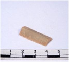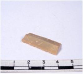 | Description / विवरण | A fragment of a rectangular shaped chert blade showing dorsal sides with sharp edges having smooth surface and triangular section. |