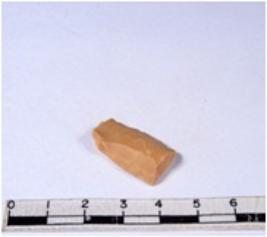 | Description / विवरण | A fragment of a rectangular shaped chert blade showing dorsal sides with sharp edges having smooth surface and triangular section. |
