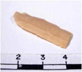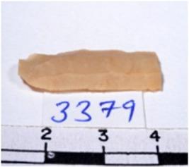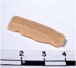 | Description / विवरण | A fragment of a rectangular shaped chert blade showing flat sides with sharp edges having smooth surface and uneven section. |