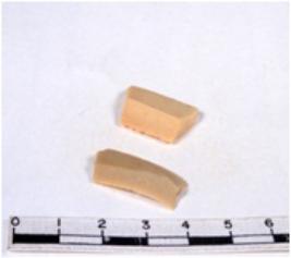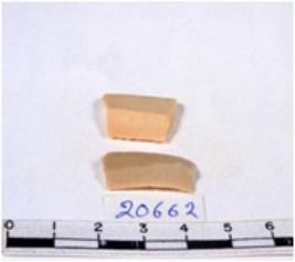 | Description / विवरण | A fragment of a rectangular shaped chert blade showing dorsal sides with sharp edges having smooth surface and triangular section. |