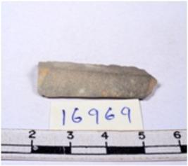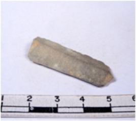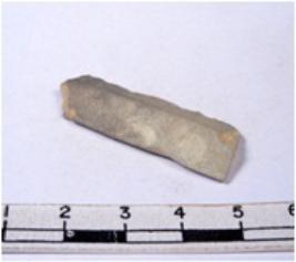 | Description / विवरण | A fragment of a rectangular shaped chert blade showing dorsal sides with sharp edges having smooth surface and triangular section. |