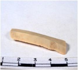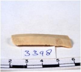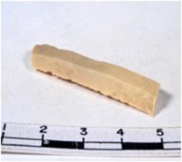 | Description / विवरण | A fragment of a rectangular shaped chert blade showing dorsal sides with sharp cutting edges having smooth surface and triangular section. |