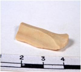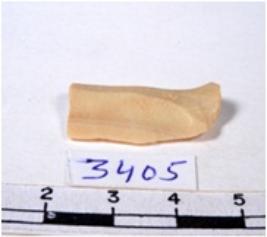 | Description / विवरण | A fragment of a rectangular shaped chert blade showing dorsal sides with sharp edges having smooth surface and uneven section. |