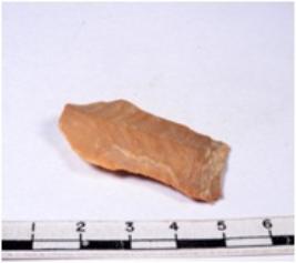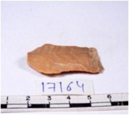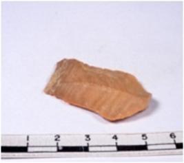 | Description / विवरण | A fragment of a rectangular shaped chert blade showing dorsal sides with sharp edges having smooth surface and triangular section. |