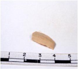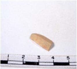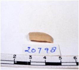 | Description / विवरण | A fragment of a rectangular shaped chert blade showing dorsal sides with sharp edges having smooth surface and triangular section. |