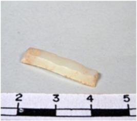 | Description / विवरण | A fragment of a rectangular shaped chalcedony blade showing flat sides with sharp cutting edges having smooth surface and uneven section. |