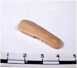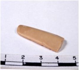| Description / विवरण | A fragment of a rectangular shaped chert blade showing dorsal sides with sharp cutting edges having smooth surface and uneven section. |