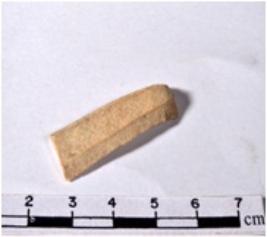 | Description / विवरण | A fragment of a rectangular shaped chert blade showing flat sides with sharp cutting edges having smooth surface and triangular section. |