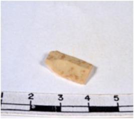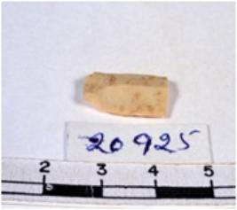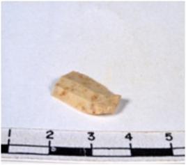 | Description / विवरण | A fragment of a rectangular shaped chert blade showing dorsal sides with sharp edges having smooth surface and uneven section. |