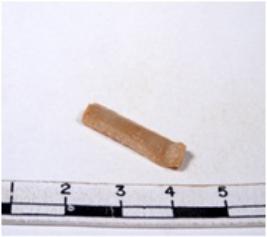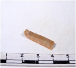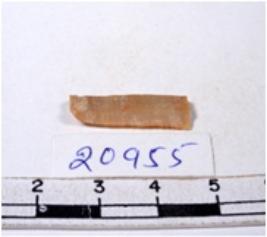 | Description / विवरण | A fragment of a rectangular shaped chert blade showing dorsal sides with sharp edges having smooth surface and triangular section. |