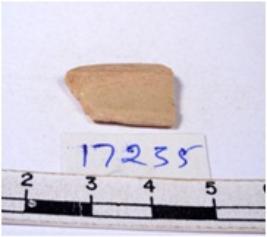 | Description / विवरण | A fragment of a rectangular shaped chert blade showing dorsal sides with sharp edges having smooth surface and triangular section. |