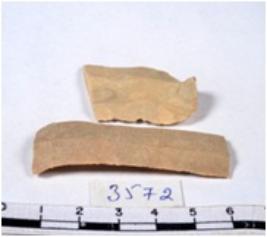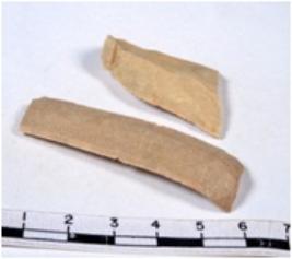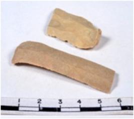 | Description / विवरण | A fragment of a rectangular shaped chert blade showing dorsal sides with sharp cutting edges having smooth surface and triangular section. |