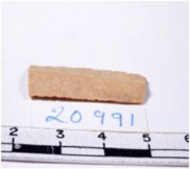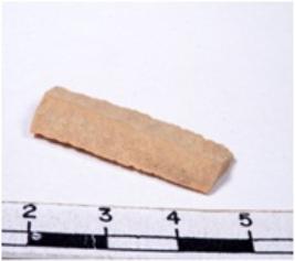 | Description / विवरण | A fragment of a rectangular shaped chert blade showing dorsal sides with sharp edges having smooth surface and triangular section. |