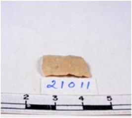| Description / विवरण | A fragment of a rectangular shaped chert blade showing dorsal sides with sharp edges having smooth surface. |