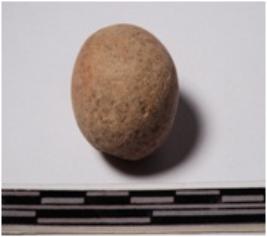 | Description / विवरण | A terracotta sling ball round in shape of smooth surface. |