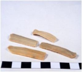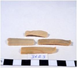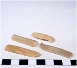 | Description / विवरण | A fragment of a rectangular shaped chert blade showing dorsal sides with sharp cutting edges having smooth surface and triangular section. |