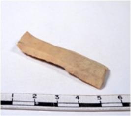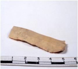 | Description / विवरण | A fragment of a rectangular shaped chert blade showing parallel sides with sharp cutting edges having smooth surface and triangular section. |