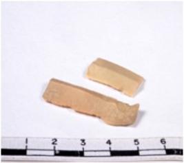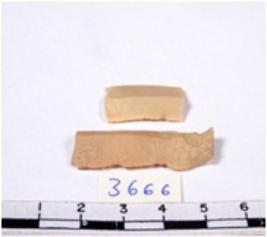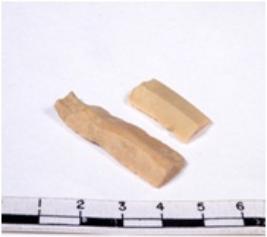 | Description / विवरण | A fragment of a rectangular shaped chert blade showing dorsal sides with sharp cutting edges having smooth surface and triangular section. |