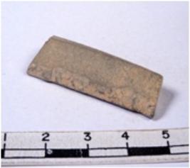 | Description / विवरण | A fragment of a rectangular shaped chert blade showing dorsal sides with sharp edges having smooth surface and triangular section. |
