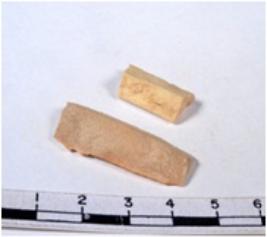 | Description / विवरण | A fragment of a rectangular shaped chert blade showing flat sides with sharp edges having smooth surface and uneven section. |