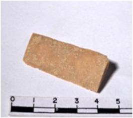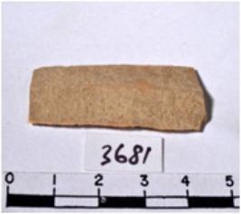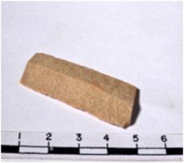 | Description / विवरण | A fragment of a rectangular shaped chert blade showing dorsal sides with sharp cutting edges having smooth surface and triangular section. |