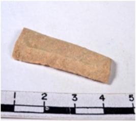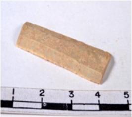 | Description / विवरण | A fragment of a rectangular shaped chert blade showing dorsal sides with sharp cutting edges having smooth surface and triangular section. |
