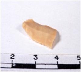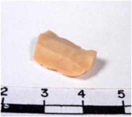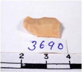| Description / विवरण | A fragment of a rectangular shaped chert blade showing dorsal sides with sharp cutting edges having smooth surface and triangular section. |