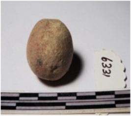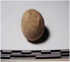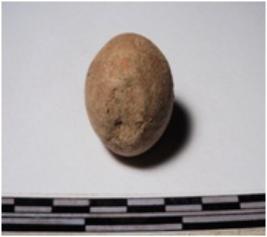 | Description / विवरण | A terracotta sling ball round in shape of smooth surface. |