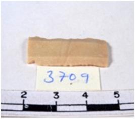 | Description / विवरण | A fragment of a rectangular shaped chert blade showing dorsal sides with sharp cutting edges having smooth surface and triangular section. |