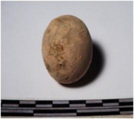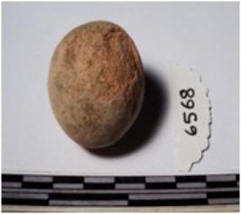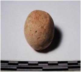 | Description / विवरण | A terracotta round in shape sling ball of smooth surface. |