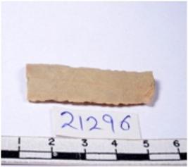 | Description / विवरण | A fragment of a rectangular shaped chert blade showing dorsal sides with sharp edges having smooth surface and triangular section. |