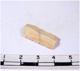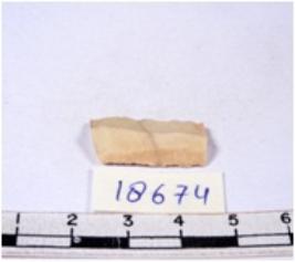| Description / विवरण | A fragment of a rectangular shaped chert blade showing dorsal sides with sharp edges having smooth surface and triangular section. |
