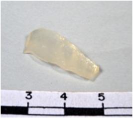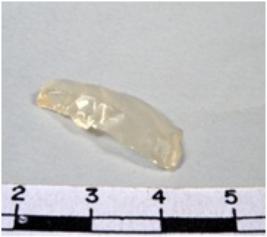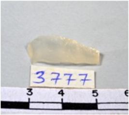| Description / विवरण | A fragment of a rectangular shaped chalcedony blade showing flat sides with sharp cutting edges having smooth surface and uneven section. |