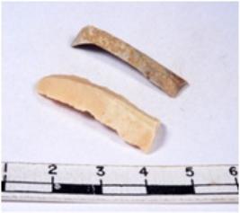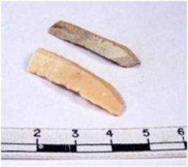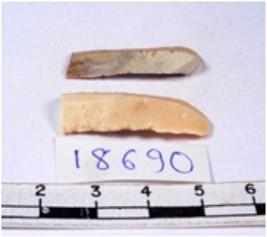 | Description / विवरण | A fragment of a rectangular shaped chert blade showing parallel sides with sharp edges having smooth surface and triangular section. |