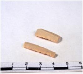 | Description / विवरण | A fragment of a rectangular shaped chert blade showing dorsal sides with sharp cutting edges having smooth surface and triangular section. |