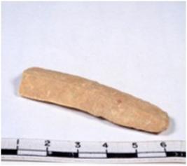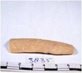 | Description / विवरण | A fragment of a rectangular shaped chert blade showing dorsal sides with sharp edges of smooth surface and triangular section. |