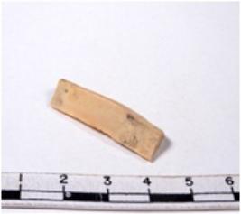 | Description / विवरण | A fragment of a rectangular shaped chert blade showing dorsal sides with sharp edges having smooth surface and triangular section. |