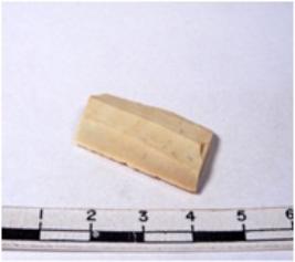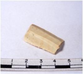 | Description / विवरण | A fragment of a rectangular shaped chert blade showing parallel sides with sharp edges having smooth surface and uneven section. |