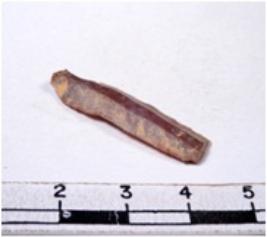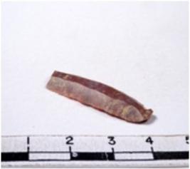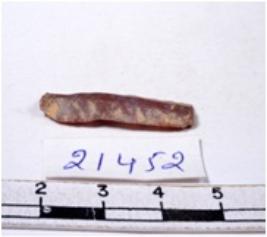 | Description / विवरण | A fragment of a rectangular shaped chert blade showing dorsal sides with sharp edges having smooth surface and triangular section. |