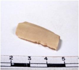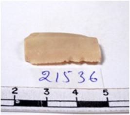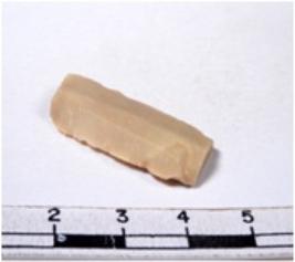 | Description / विवरण | A fragment of a rectangular shaped chert blade showing parallel sides with sharp edges having smooth surface and uneven section. |