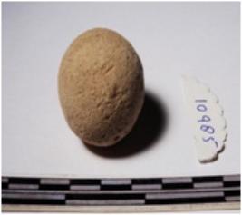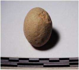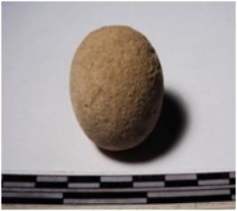 | Description / विवरण | A terracotta sling ball round in shape of smooth surface. |