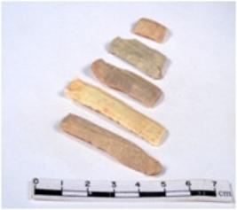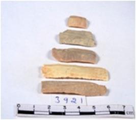| Description / विवरण | A fragment of a rectangular shaped chert blade showing parallel sides with sharp edges having smooth surface and uneven section. |