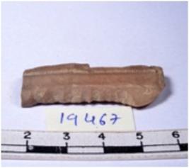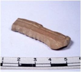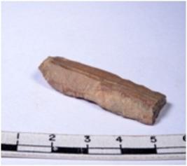 | Description / विवरण | A fragment of a rectangular shaped chert blade showing dorsal sides with sharp edges having smooth surface and triangular section. |