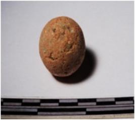 | Description / विवरण | A terracotta sling ball round in shape of smooth surface. |