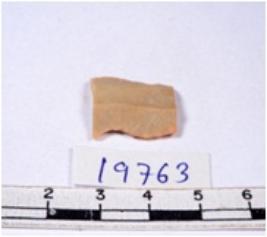 | Description / विवरण | A fragment of a rectangular shaped chert blade showing dorsal sides with sharp cutting edges having smooth surface and triangular section. |