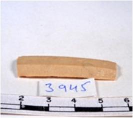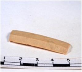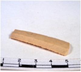 | Description / विवरण | A fragment of a rectangular shaped chert blade showing dorsal sides with sharp edges having smooth surface and triangular section. |