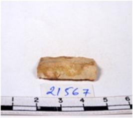 | Description / विवरण | A fragment of a rectangular shaped chert blade showing parallel sides with sharp edges having smooth surface and uneven section. |