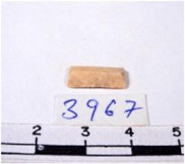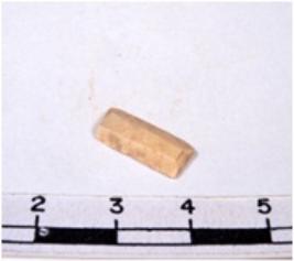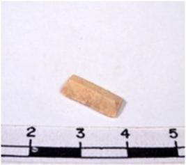 | Description / विवरण | A fragment of a rectangular shaped chert blade showing flat sides with sharp cutting edges having smooth surface and uneven section. |