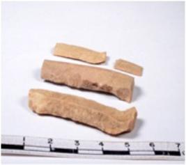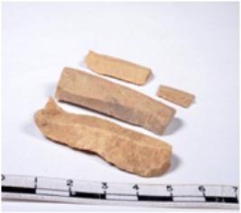 | Description / विवरण | A fragment of a rectangular shaped chert blade showing dorsal sides with sharp edges having smooth surface and triangular section. |