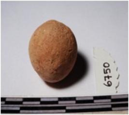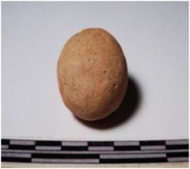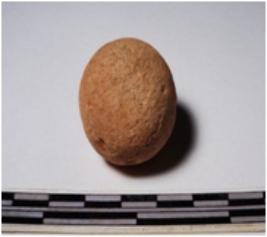 | Description / विवरण | A terracotta round in shape sling ball of smooth surface. |